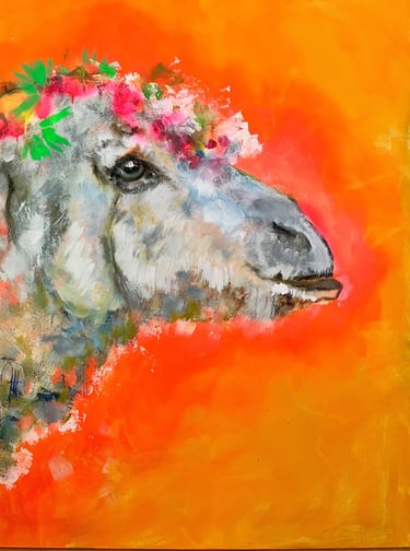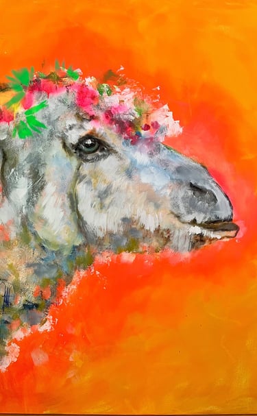 Schaf mit Blumen